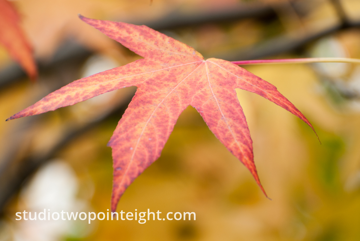 One of many photographs from a special project, the photographic etudes - An Autumnal Assay - A Red and Yellow Leaf Against a Golden Bokeh Background. View the series in a dynamic isotope style layout at the following link.