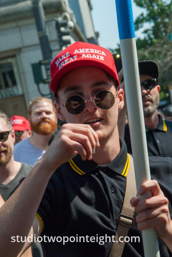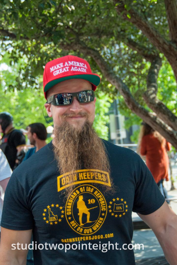 At the Liberty or Death political rally in downtown Seattle on Saturday August 18, 2018, which was sponsored by the political organization Washington Three Percent, there were numerous people wearing Make America Great Again (MAGA) hats among the attendees and marchers.