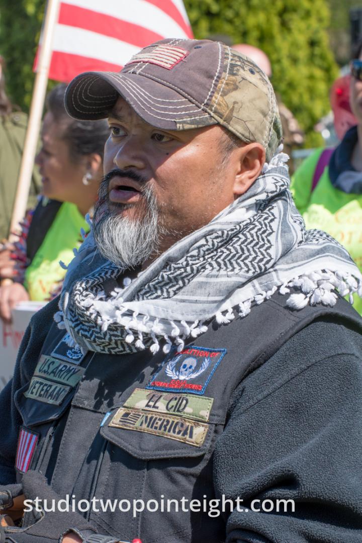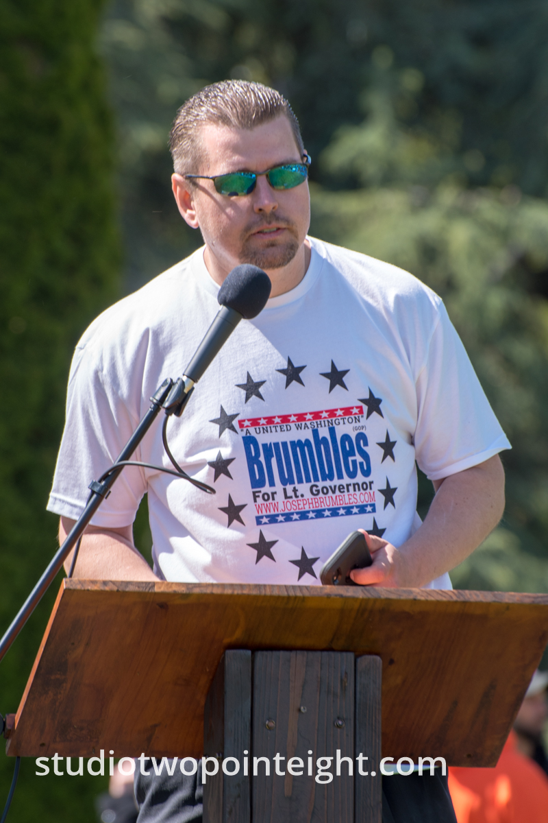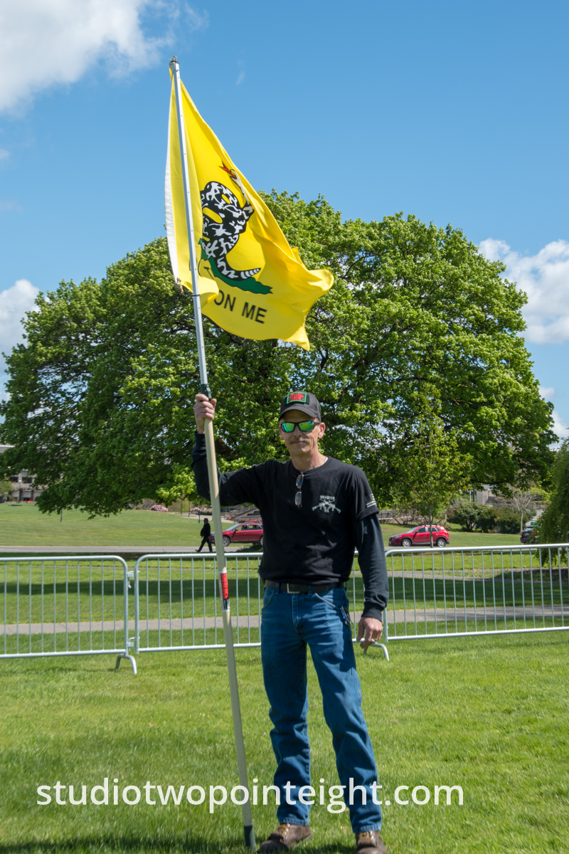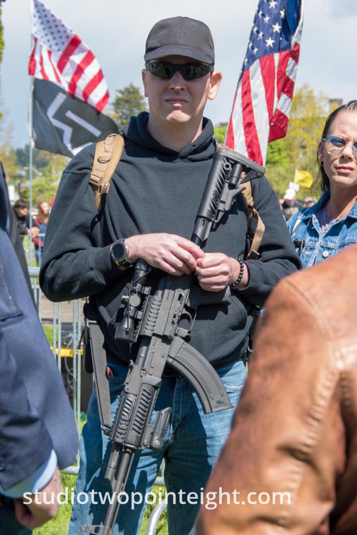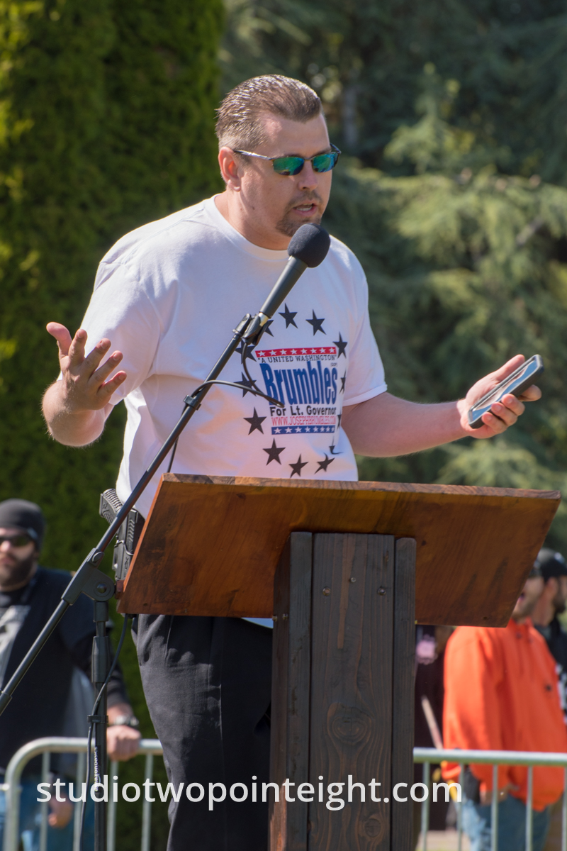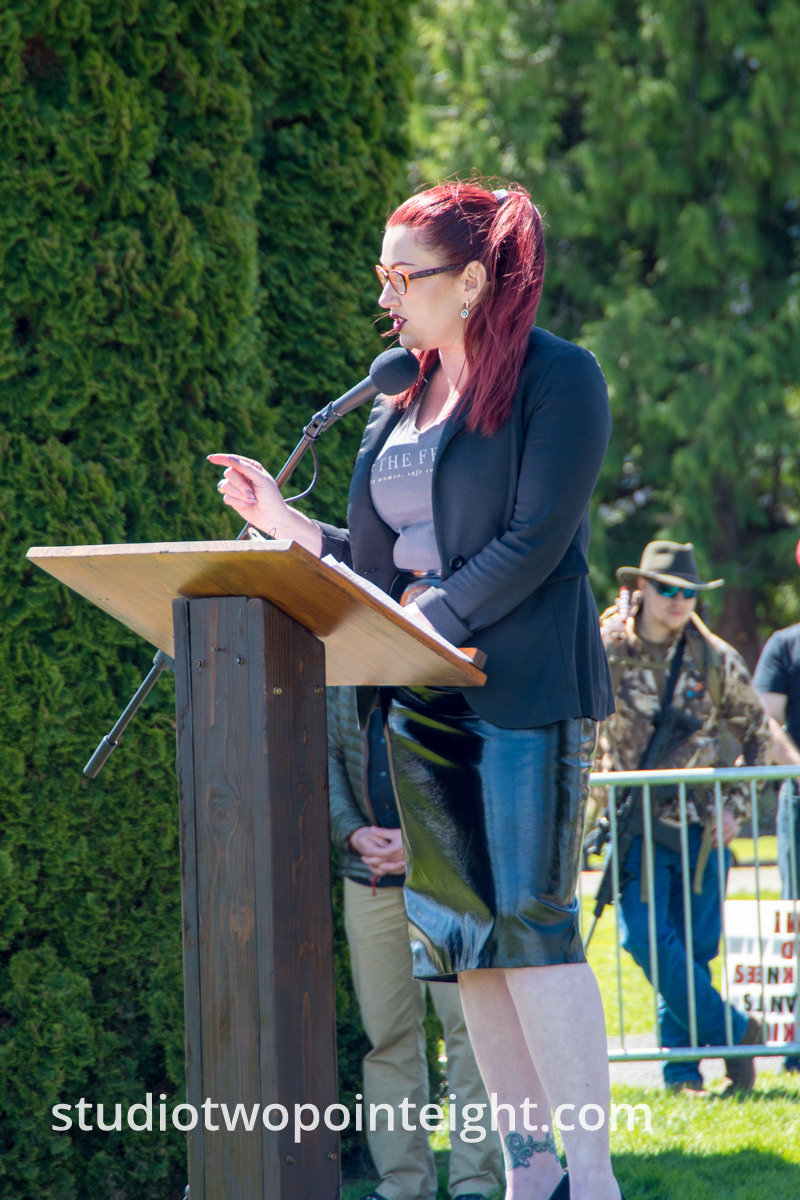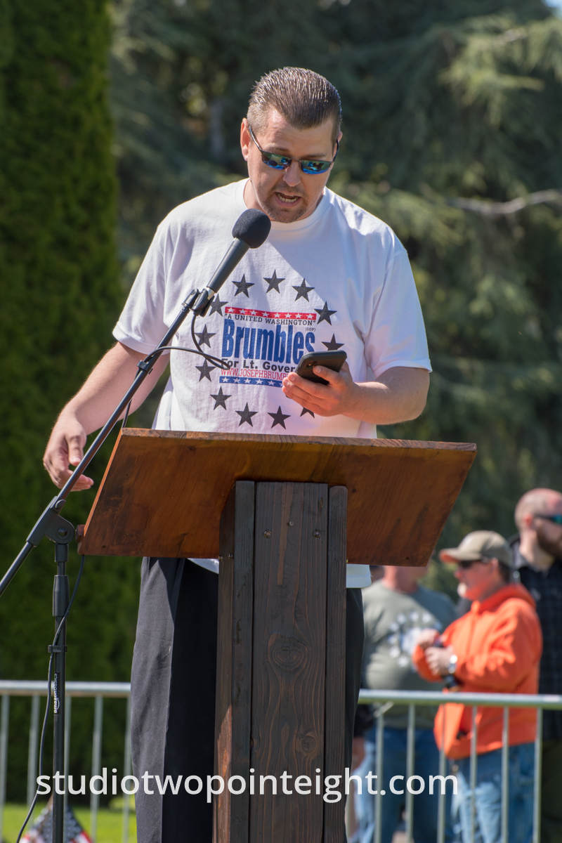 This photo gallery contains an initial set of nearly one hundred (100), tall aspect ratio photographs from the "March For Our Rights 2.0" gun rights rally held on April 27, 2019 in Olympia, Washington. This gun rights rally was held on the Washington State Capitol Grounds adjacent to the Washington State Legislative building. This gallery contains one of two large initial sets of uncategorized photo selections in "portrait" i.e. "narrow/tall" format, out of the master Studio 2.8 library of photographs from the day. Additional photographs from the March For Our Rights 2.0 rally will be published very soon. The additional sets of photographs will include topic specific galleries as well as notable individual photographs from the rally with detailed descriptive information.