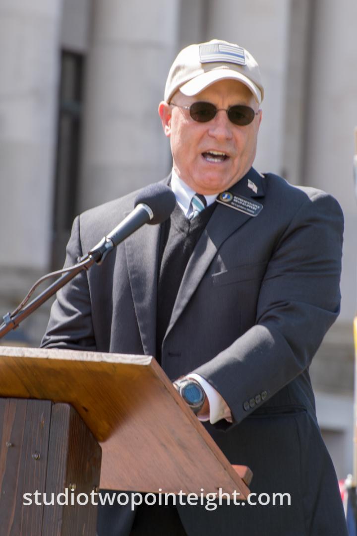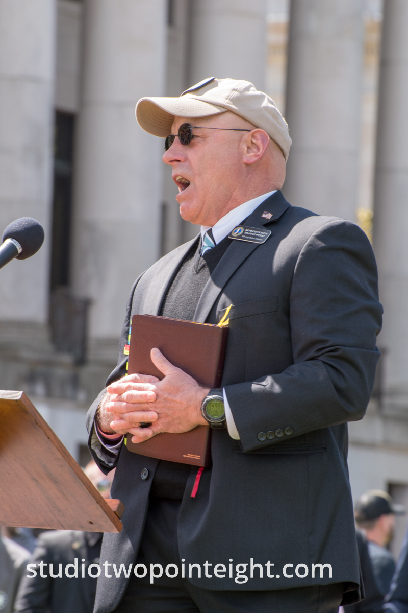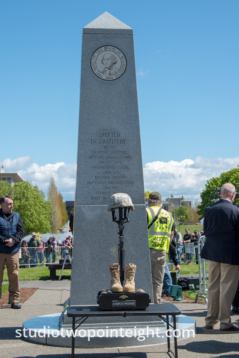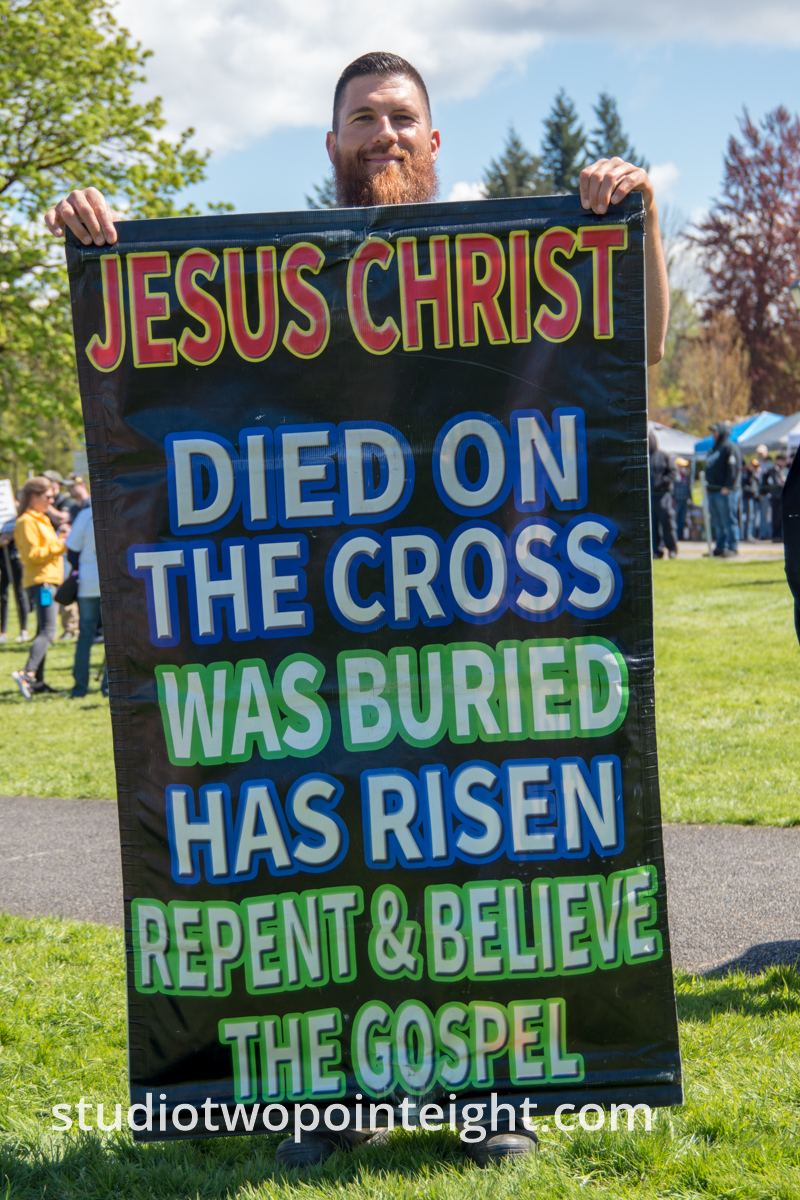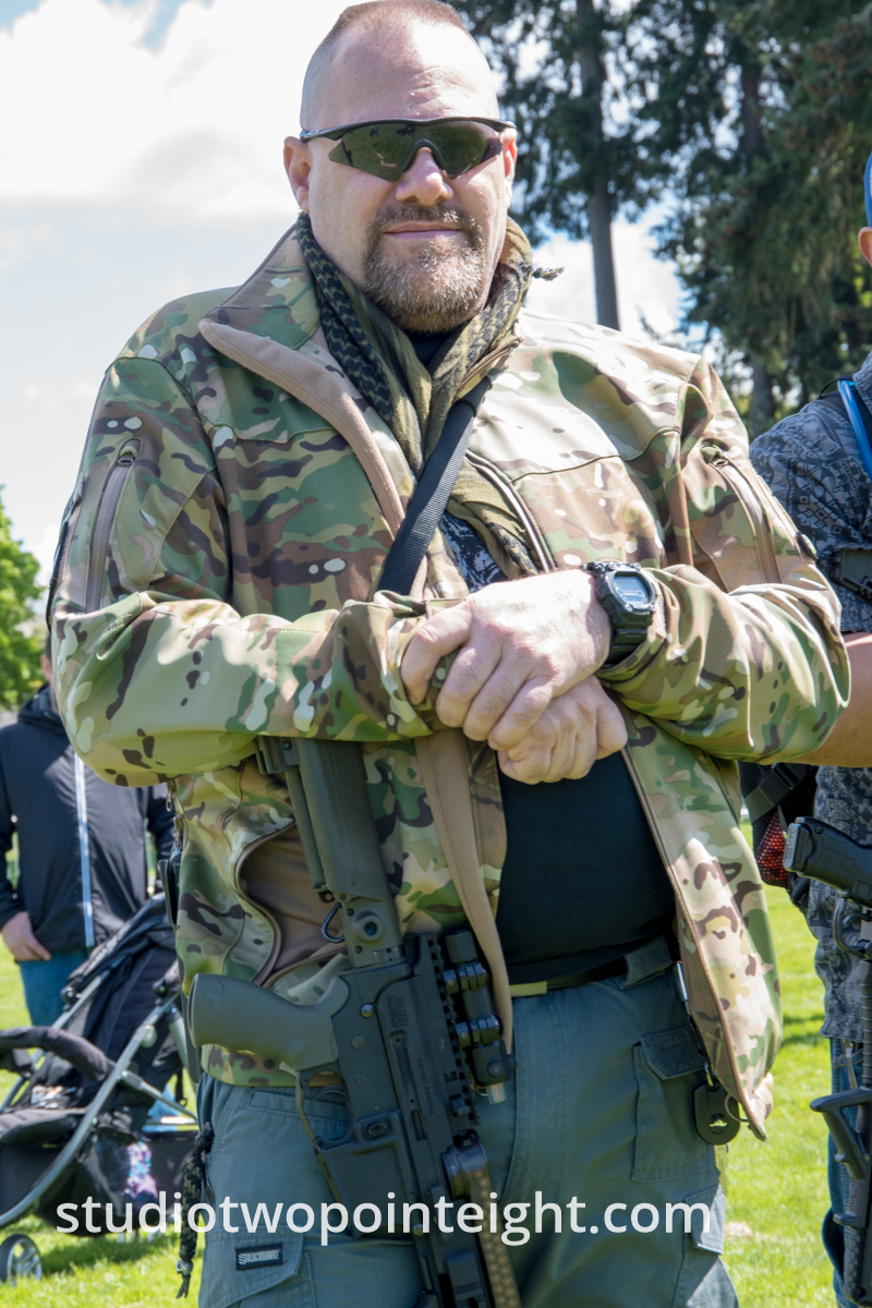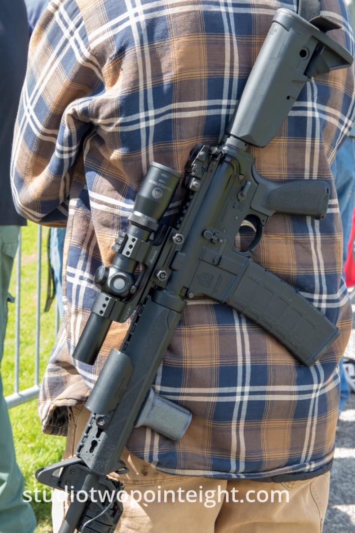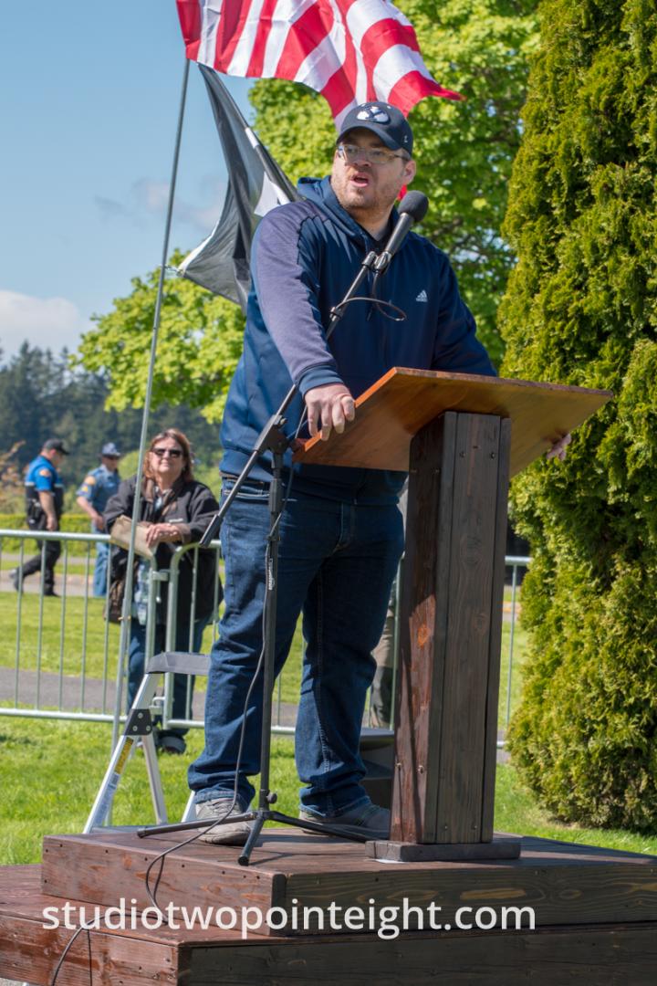 This photo gallery contains an initial set of nearly one hundred (100), tall aspect ratio photographs from the "March For Our Rights 2.0" gun rights rally held on April 27, 2019 in Olympia, Washington. This gun rights rally was held on the Washington State Capitol Grounds adjacent to the Washington State Legislative building. This gallery contains one of two large initial sets of uncategorized photo selections in "portrait" i.e. "narrow/tall" format, out of the master Studio 2.8 library of photographs from the day. Additional photographs from the March For Our Rights 2.0 rally will be published very soon. The additional sets of photographs will include topic specific galleries as well as notable individual photographs from the rally with detailed descriptive information.