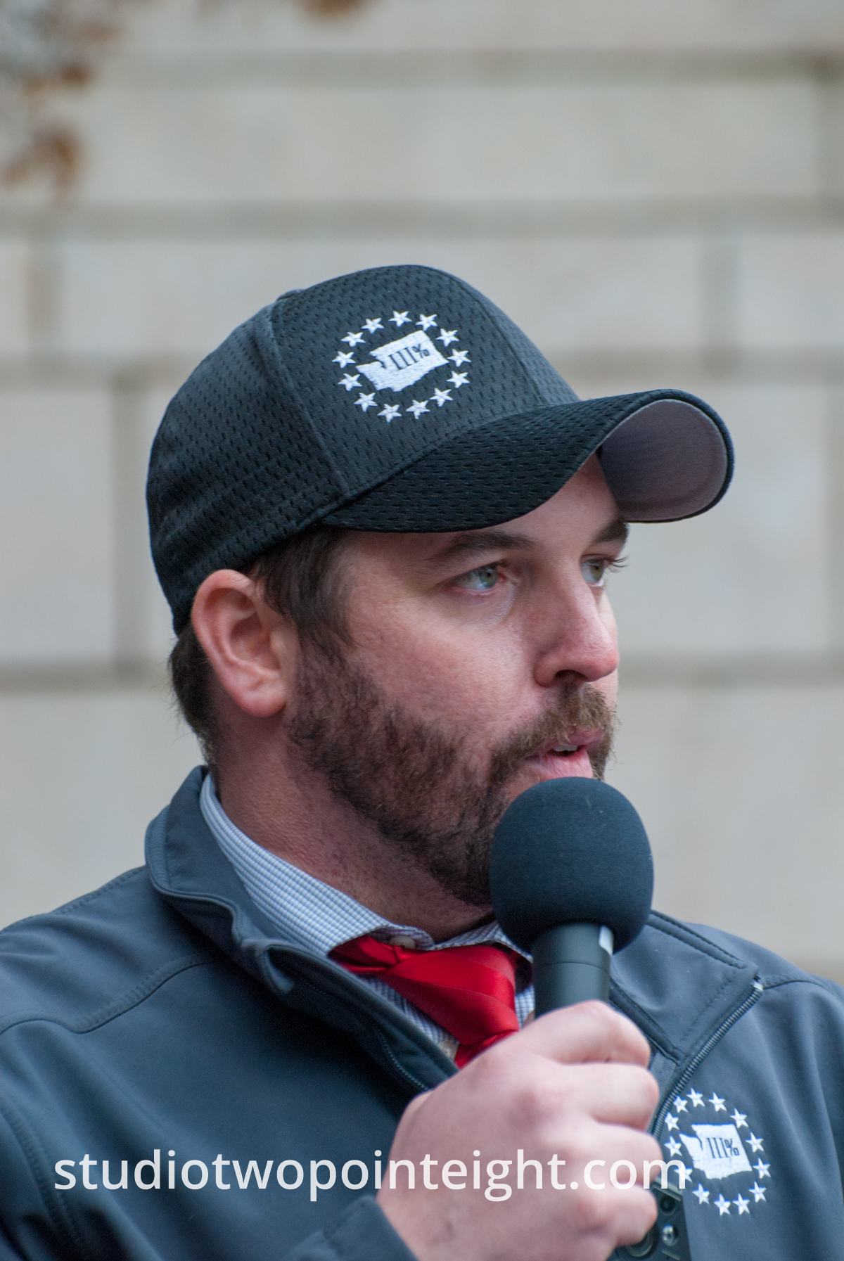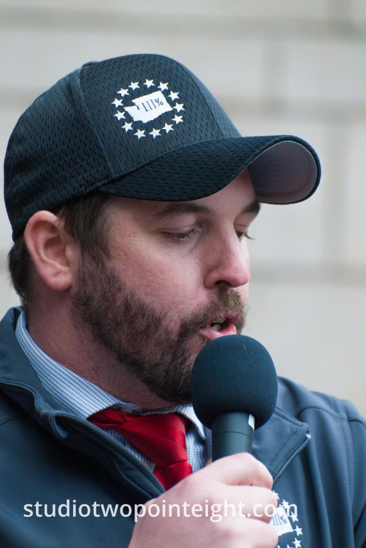 This is Matt Marshall of the Washington Three Percent as he spoke during a political rally held at Seattle City Hall on December 1, 2018. Matt Marshall is a U.S. military combat veteran. These days Matt Marshall is a family man and medical profession who works each day to help keep other people healthy.