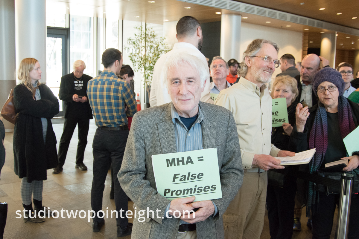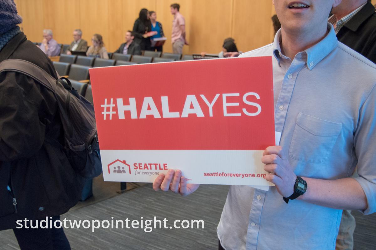 At the Seattle City Council meeting held on March 18, 2019 about its Mandatory Affordable Housing Ordinance (MHA) many Seattle residents arrived with signs, placards, posters, and diagrams that expressed their support for or opposition to the city's real estate planning ordinance.