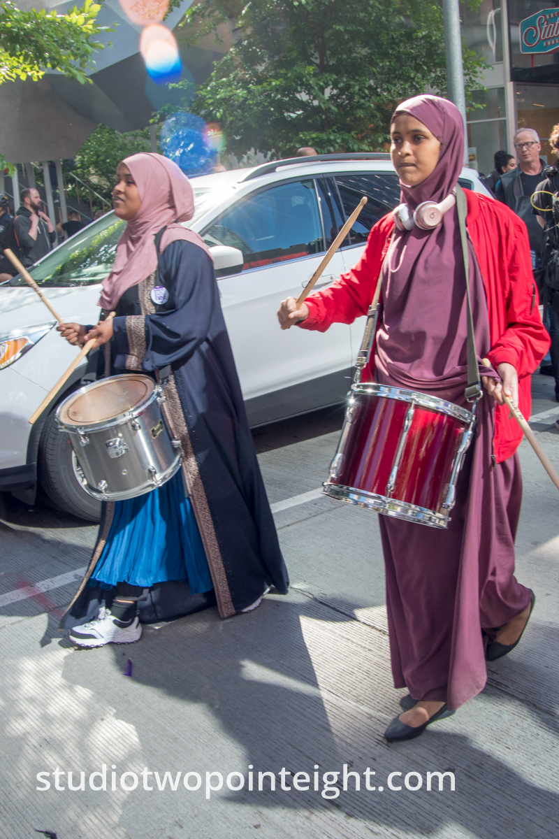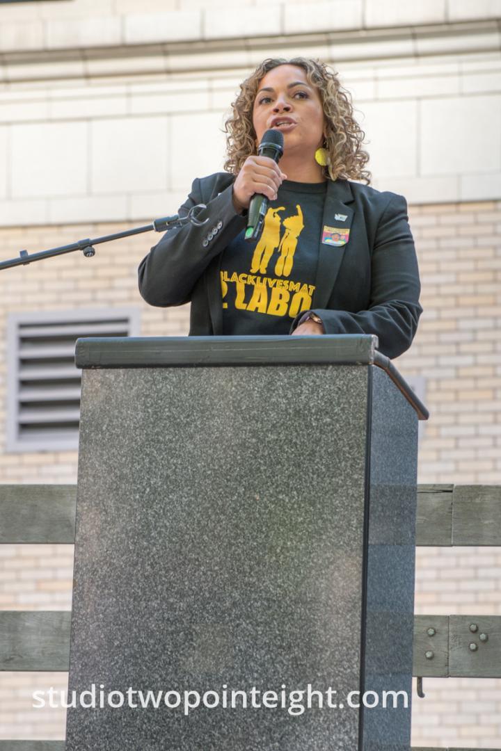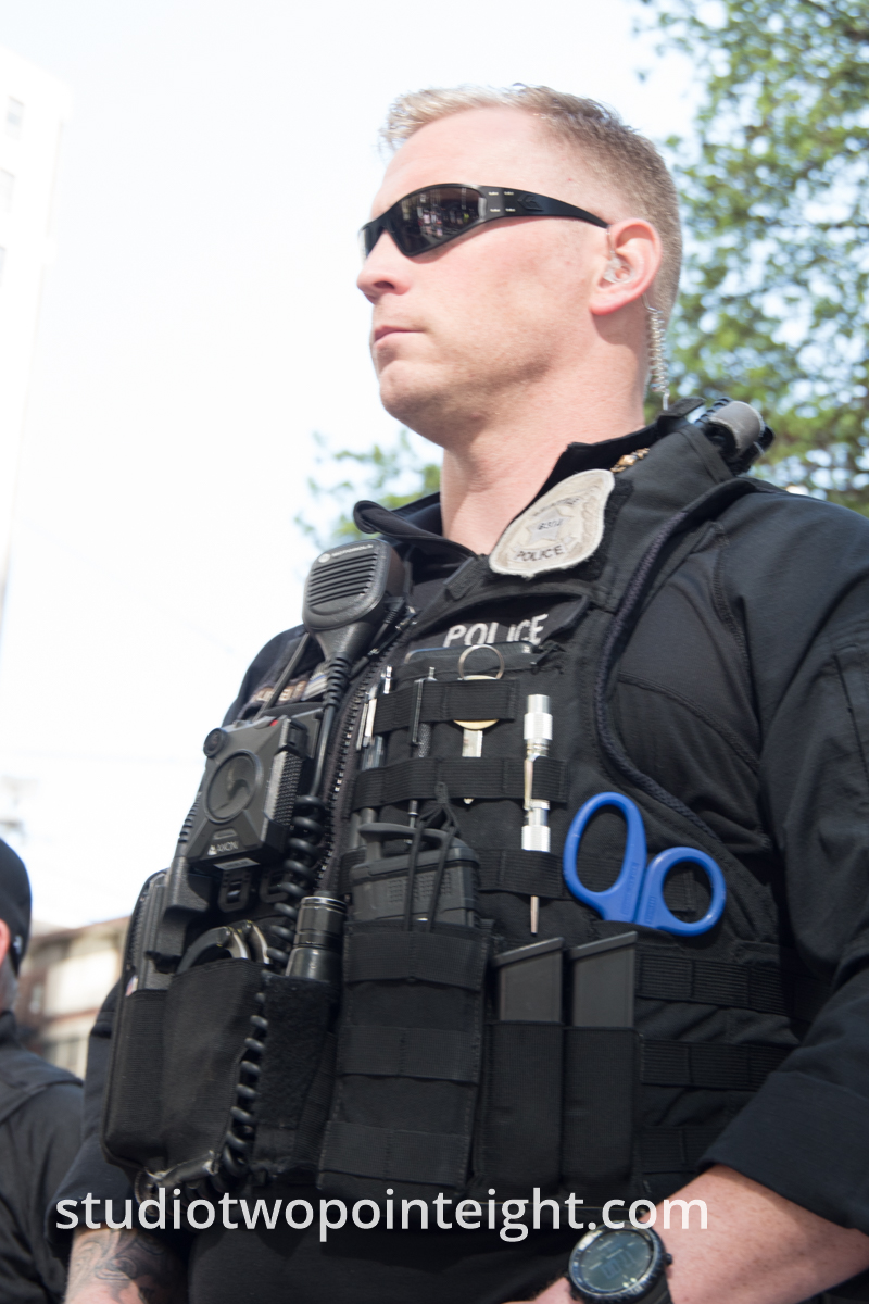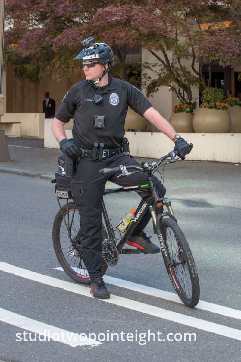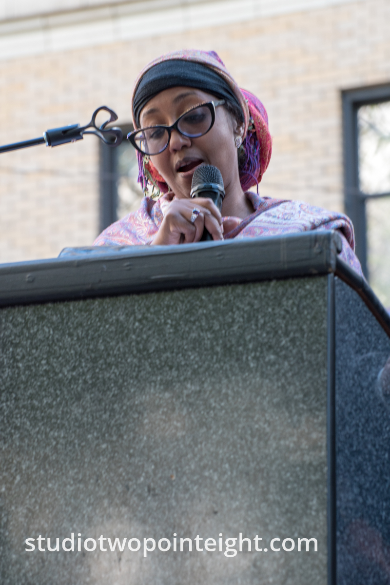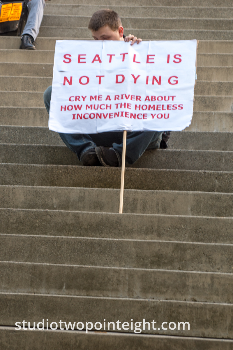 This extensive gallery of tall aspect ration photographs presents a variety of images from the May 1, 2019 U.S. Immigration Policy March and Rally held in Seattle, Washington on that day. This year's incarnation of the annual May Day immigration politics march and rally included a march along Seattle streets from Judkin's Park in south Seattle through parts of Seattle's Capitol Hill neighborhood, and then through parts of Seattle's downtown business core. The March concluded with two different sets of speeches, the first made in front of amazon.com headquarters and the second set of speeches made from a portable stage setup in front of the federal courthouse at 7th Avenue and Stewart Street. The immigration policy march and rally paused in front the amazon.com headquarters on 7th Avenue, where various speakers, including Seattle City Council member Lisa Herbold expressed their perspectives and concerns about the working conditions of employees of companies who contract with amazon.com to provide various types of services to amazon.com, such as security. The march portion of the immigration politics rally was led through the streets by the well known Aztec traditional dancing troop Ceatl Tonalli, whose dancers wear brightly colored traditional Aztec costumes as they conduct formal group dancing to the beat of a drum team. The photographs in this gallery are presented primarily in chronological order.