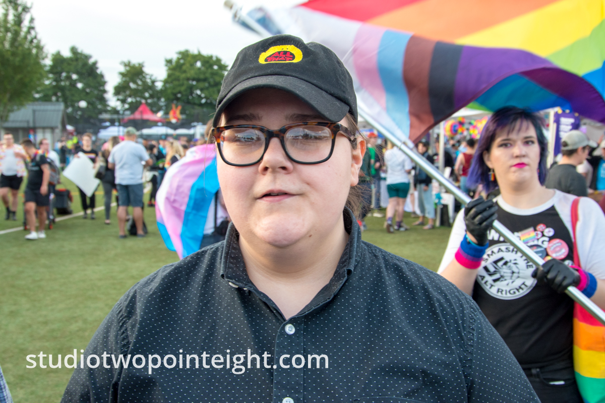 This Studio 2.8 photography photograph was produced on the evening of June 28, 2019 at the Seattle Trans Pride event, held at Cal Anderson Park in the Capitol Hill neighborhood of Seattle, Washington. In this Studio 2.8 photograph, a staff member associated with the group Gender Justice League which organized the 2019 Seattle Trans Pride event, maliciously, publicly, falsely, accused a Studio 2.8 photographer who is an LGBTQ woman of color, of being: a "fascist", a "racist", and specifically a member of a political group called "Patriot Prayer", while she participated in a misguided vigilante hate mob, when the truth is that neither Studio 2.8 photography, nor anyone associated with Studio 2.8 photography, is a member of any political group, regardless of political ideology.