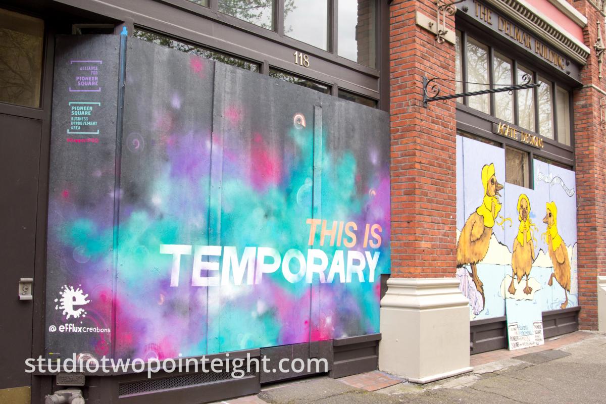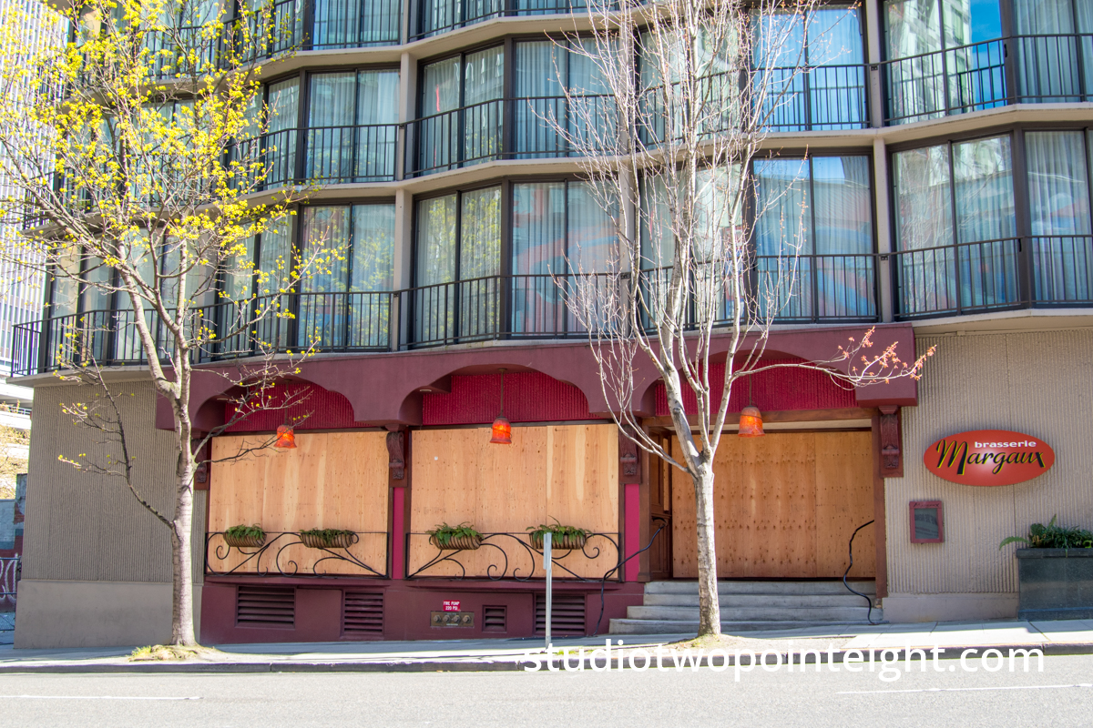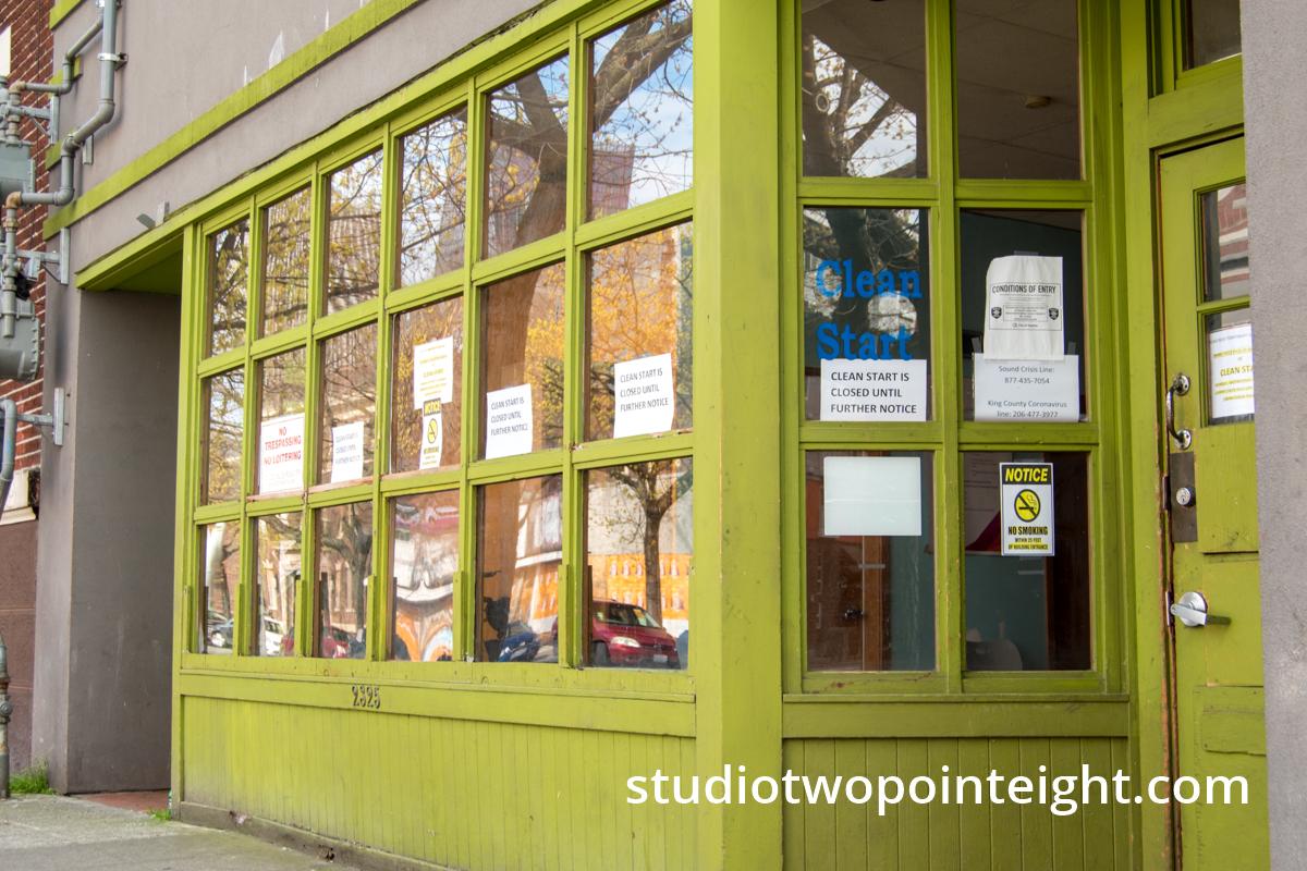Studio 2.8 photography and videography is documenting the 2020 COVID19 corona virus pandemic, panic, and crisis, producing extensive documentary photographs and video as the pandemic unfolds and evolves. The gallery of Studio 2.8 photography photos above, presents Studio 2.8 photos of closed storefronts around the Pacific Northwest, photos of the Pacific Northwest's closed and boarded up storefronts, including storefront in and around Seattle, Washington.