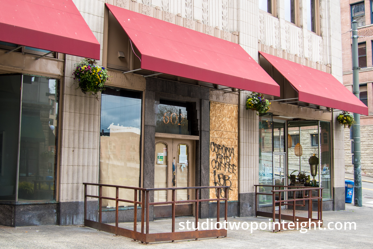 The photographs in this Studio 2.8 super gallery include photographs of businesses throughout the Seattle and Puget Sound region, many with boarded up storefronts, and others that have completely shutdown and gone out of business permanently. The gallery above of Studio 2.8 photographs documents the social, personal, and economic, devastation caused by the government "stay at home" orders that have been issued in a hopeful attempt to help prevent the spread of the COVID-19 virus which has killed people locally, has killed people across the United States, and which has sickened some people and killed other people all over the world.