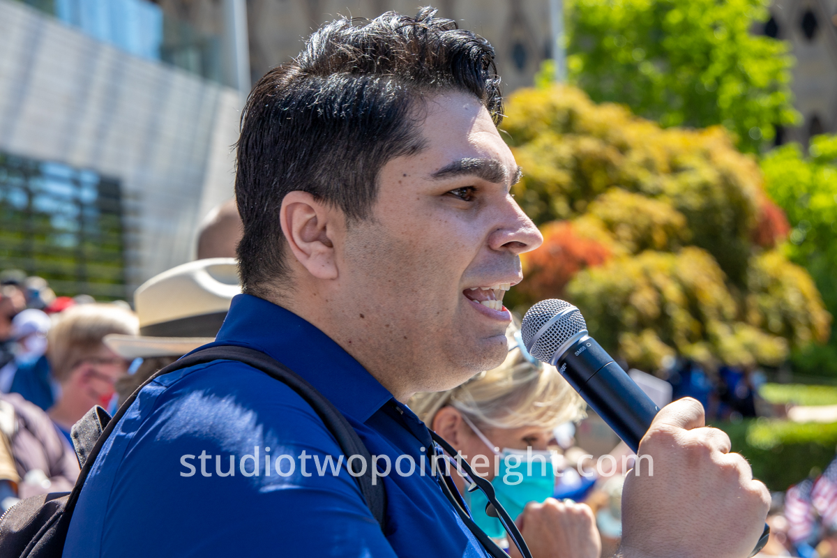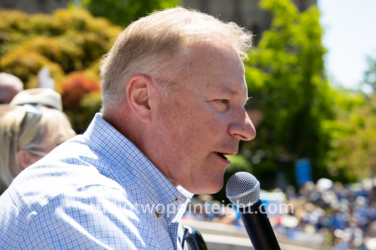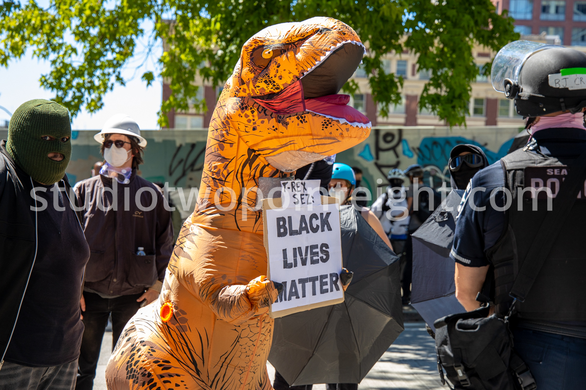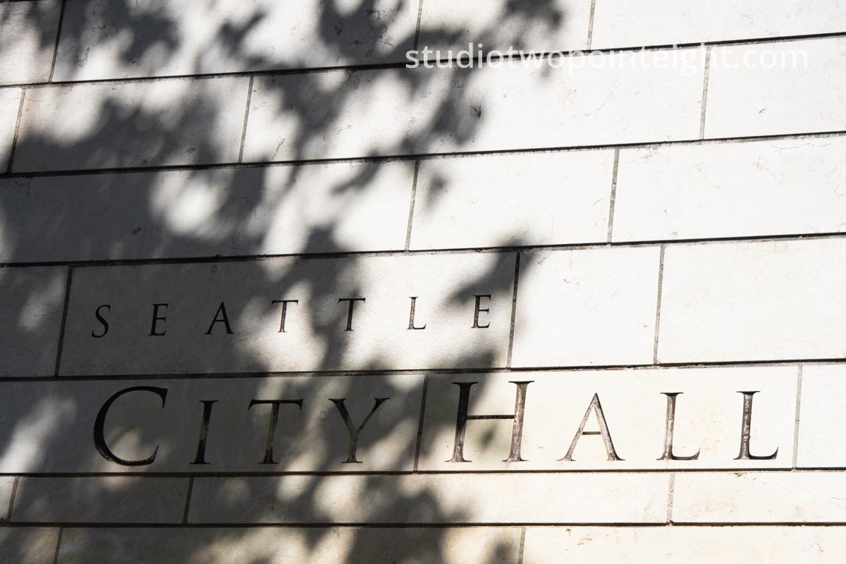 The Studio 2.8 photography super gallery of photographs above presents selected photographs from photos produced by Studio 2.8 Photography on Sunday August 9, 2020 in Seattle at a political rally and demonstration entitled "Stop Defunding SPD". The August 9, 2020, political rally was organized by the Seattle Police Officers Guild, and other supporters of the Seattle Police Department who do not want the Seattle Police "defunded" by the Seattle City Council and Seattle Mayor Jenny Durkan. This political rally, held on the Seattle City Hall courtyard along 4th Avenue in downtown Seattle, was attended about over 1,000, and possibly as many as 2,000, political demonstrators, a crowd so large that it overflowed onto the large Seattle City Hall grand exterior staircase. The speakers at this political rally included Seattle Police Officers Guild president Mike Solan, KIRO Radio host Jason Rantz, and University of Washington meteorologist Cliff mass.