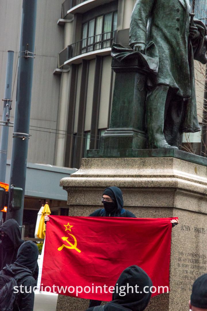 Counter protesters were also present at the "Seattle Liberty March" political rally and march. Many of the counter-protesters appeared to be part of the anarcho-communist domestic terror cell network that has become a significant presence at nearly every political event in and around Seattle, regardless of the political ideology espoused by political event organizers. The Seattle area anarcho-communist domestic terrorists have become infamous and their public visibility increased since one person among their terrror cell network, a man named Willen Van Spronsen, who was also a member of a communist militia called the "Puget Sound John Brown Gun Club", fire bombed the Tacoma, Washington federal immigration detention center on Saturday July 13, 2019 while wielding a homemade AR-15 type rifle, and was subsequently shot and killed by Tacoma, WA police.