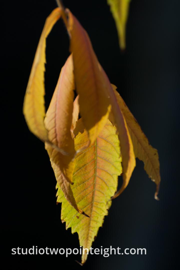 One of many photographs from a special project, the photographic etudes - An Autumnal Assay - Green Leaves On a Black Bokeh Background. View the series in a dynamic isotope style layout at the following link.