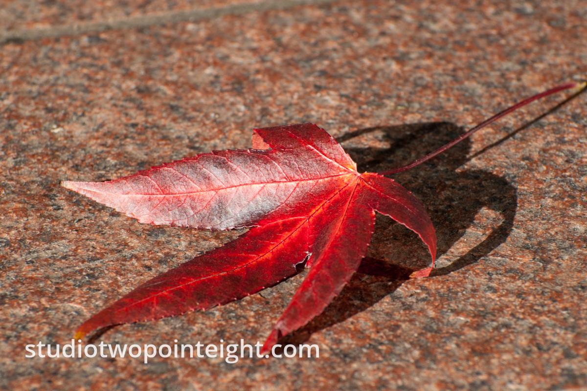 One of many photographs from a special project, the photographic etudes - An Autumnal Assay - A Deep Red Leaf Fallen Onto Brown Pavement. View the series in a dynamic isotope style layout at the following link.