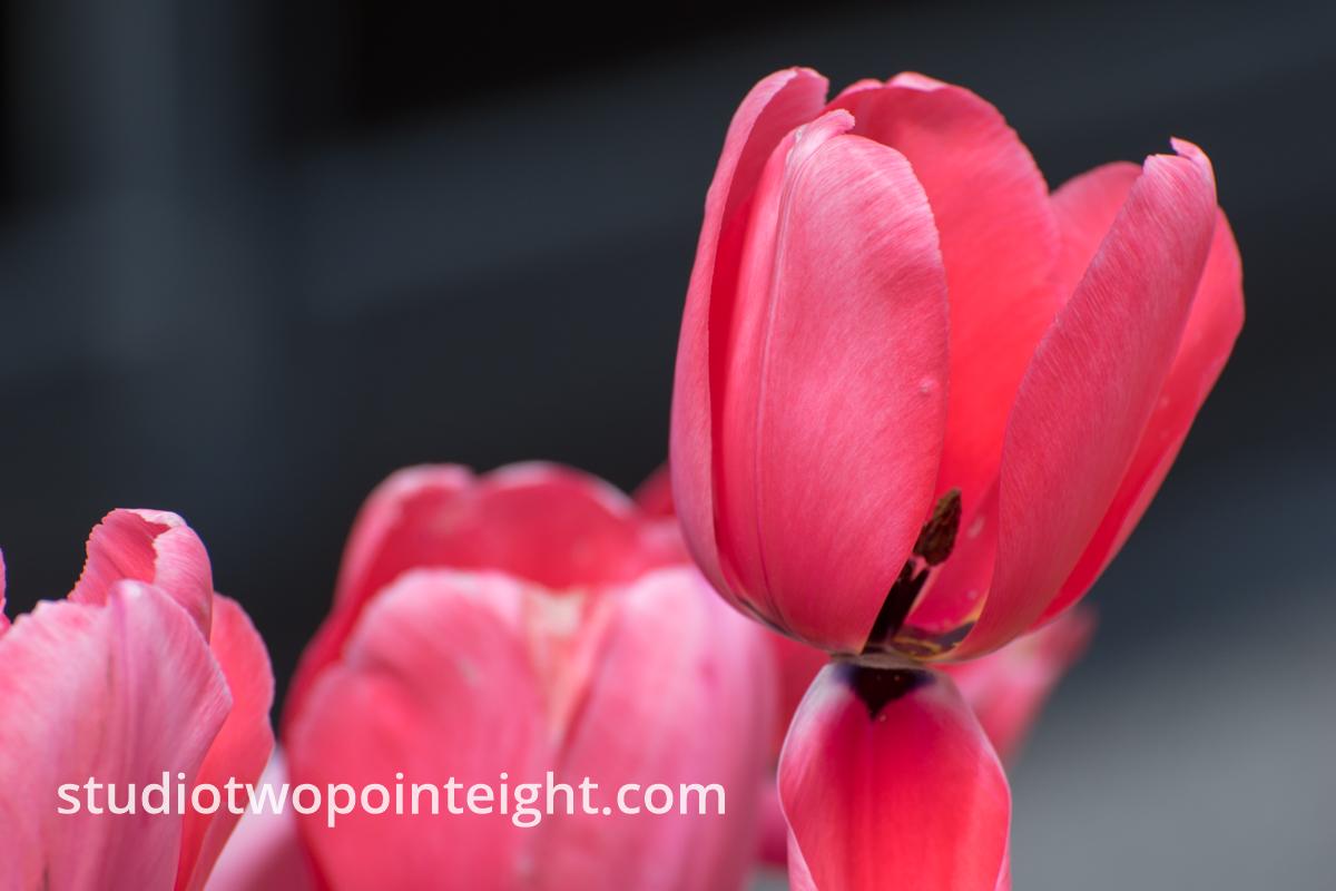 The various photographs of all orange tulip blossoms that comprise this Studio 2.8 photography photo montage video were produced in late April 2020 near the end of the Seattle area tulip blossom season. The Studio 2.8 photographs in this video montage were all produced at a Seattle area garden that is planted every year by a professional gardener who nurtures the flower beds where these tulips grew with daily care.