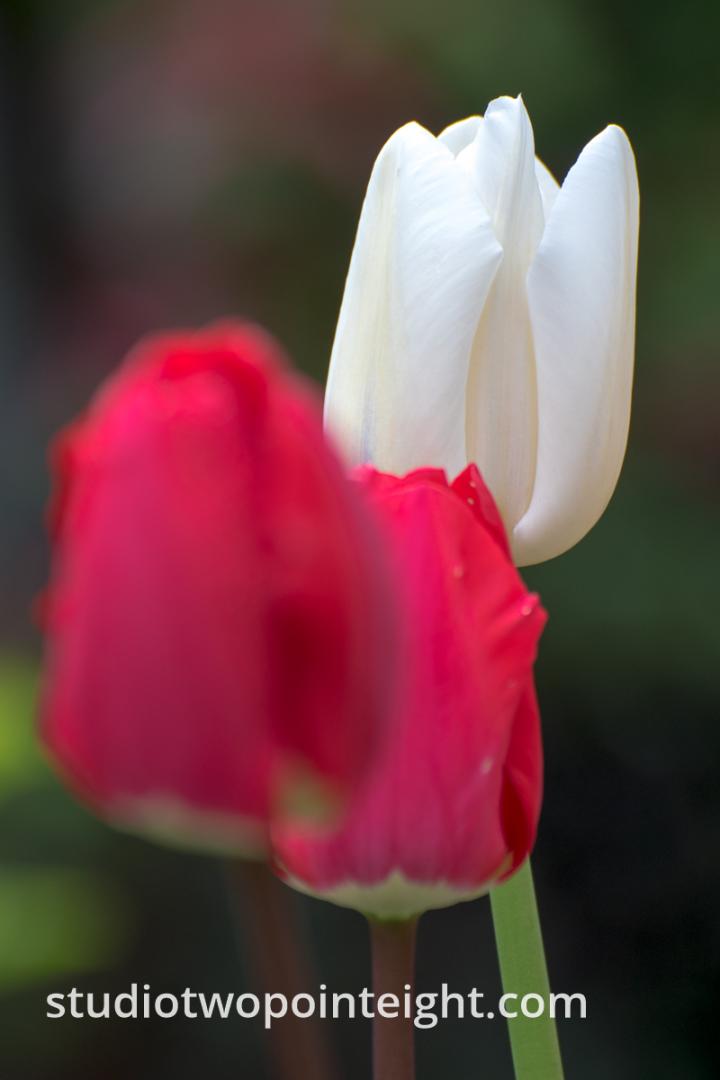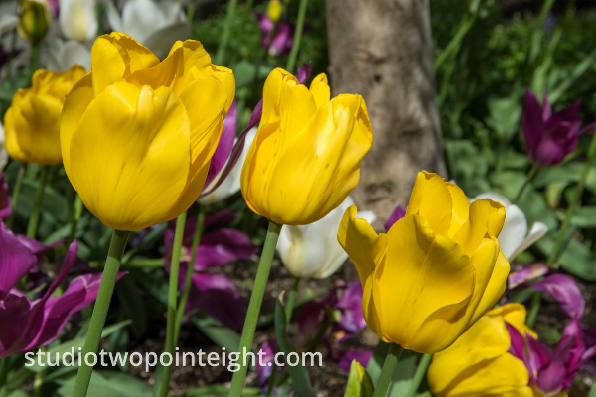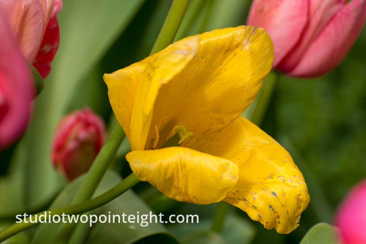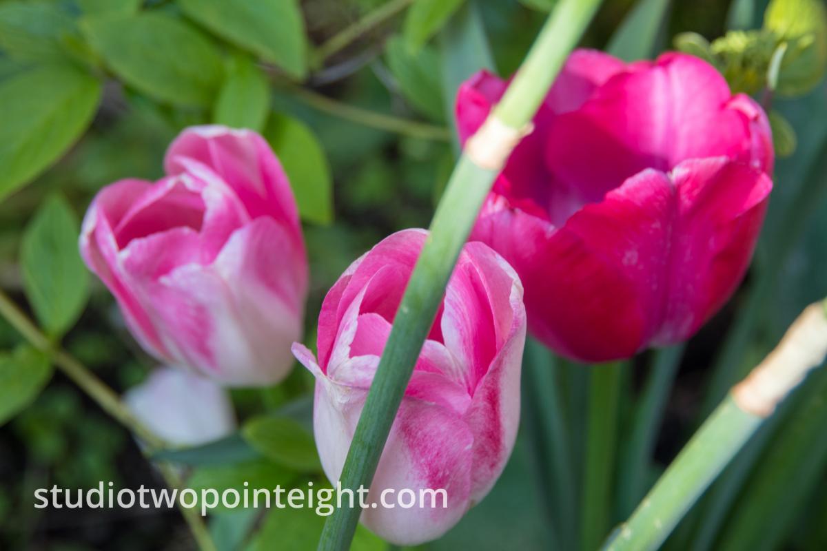 Studio 2.8 Tulip Blossoms 2020 May, A Trio of Late Season Glorious Pink and Sienna Tulip Blossoms During Evening Shade