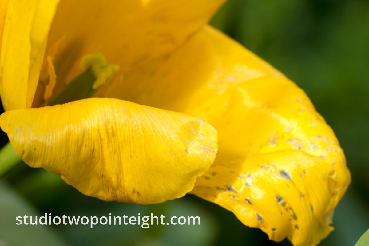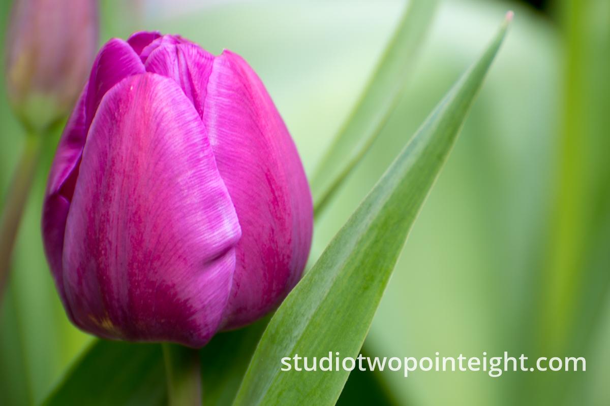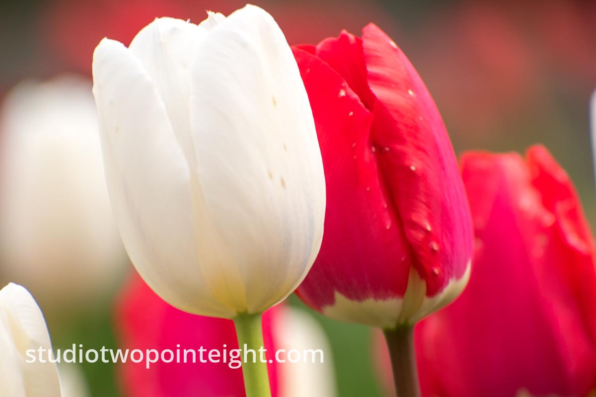This Studio 2.8 photography, late 2020 Spring tulip blossom season photo was produced in Seattle, Washington during early May 2020, near the end of the Pacific Northwest's Spring 2020 Tulip Blossom season. This Studio 2.8 photograph presents a trio of muted pink and sienna blossoms as they appeared in soft evening light, near dusk in the shadows of an overhanging tree.