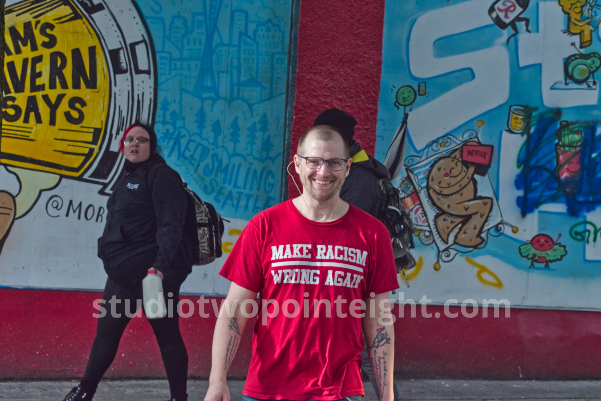 It seems astonishingly ironic that a European American man, in attendance at a racial justice political demonstration in support of African American people, would attack, viciously tackle to the ground, and brazenly attempt to rob the photo and video gear of, a photojournalist, in broad daylight, with bystanders all around, and hundreds of Seattle Police officers just blocks away,